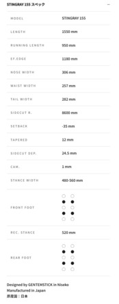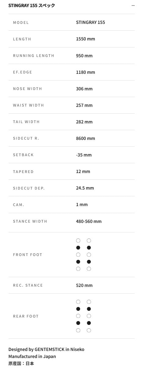 【New!】25/26 GENTEMSTICK STINGRAY 155 ※当店ラスト1本!