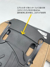 スプリットボードとして使用する時、写真の矢印に沿ってパッドを切り取るため、
